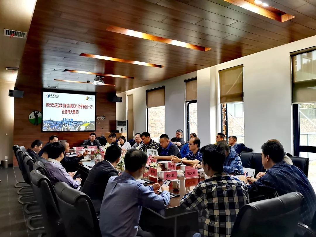 协会副会长韦明率众会员,与伟大集团节能建设公司总经理吴致远、节能房股份有限公司执行总经理易文志等进行座谈交流