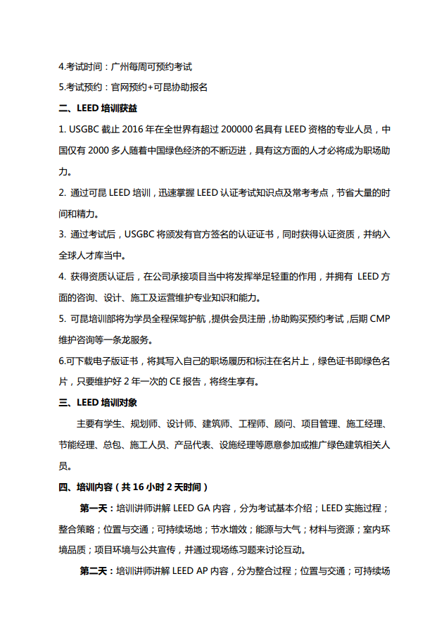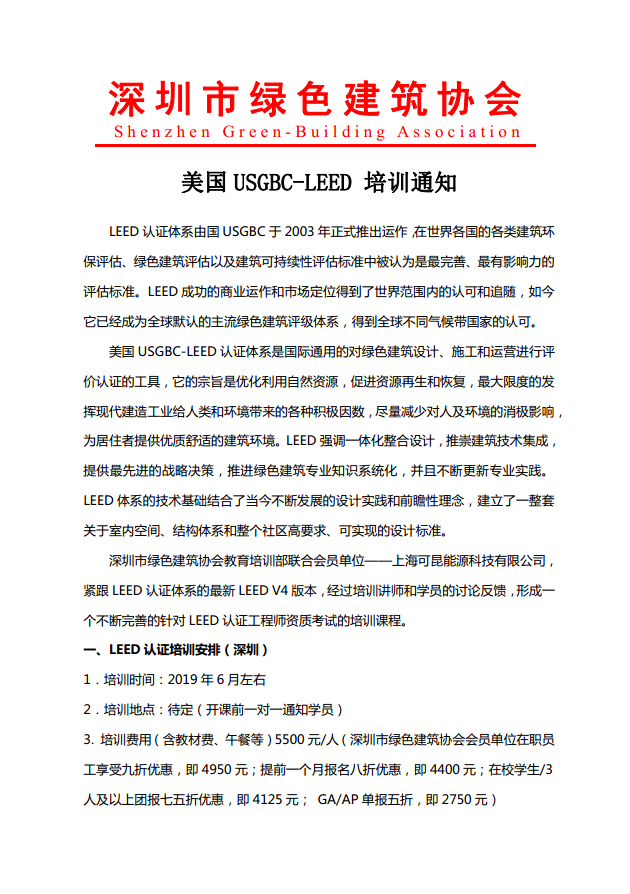 美国 USGBC-LEED GA/AP认证工程师培训通知