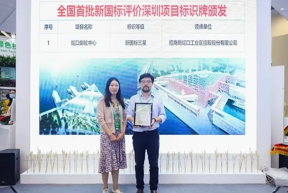 在深圳市优秀绿色建筑标识牌颁发环节,有关领导为8个优秀绿色建筑项目授牌,其中包括全国首批新国标评价项目、深圳首个新国标三星级认证项目——深圳蛇口邮轮中心。据了解,深圳蛇口邮轮中心为高层综合性建筑,集水陆交通换乘、通关服务、办公、商业、滨海休闲、配套服务于一体,以全方位优质信息化服务为路径,契合了绿色建筑新国标“以人为本”、“绿色运营”等技术要求。