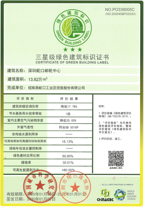 日前,深圳市蛇口邮轮中心作为深圳市优秀绿色建筑项目在苏州绿博会上获颁国家绿色建筑三星级认证标识牌,是全国首批、深圳首个新国标三星级认证项目。该项目创造了由中国城市科学研究会和地方协会共同评审项目的先例,先后通过两轮技术与形式审查——hth网页版怎么进组织的专家现场审查和中国城市科学研究会、hth网页版怎么进联合组织的专家评审会,最终获得两家机构联合盖章认可。