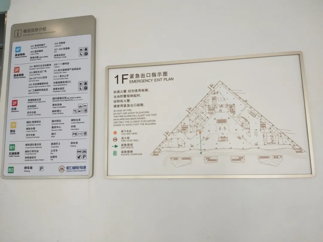 环境宜居:邮轮中心在不同的位置采用智能化的环境监测设施,随时显示PM2.5噪声等环境指数。为了确保运营环境良好,项目中采用相关的绿色技术措施,例如:建筑室内外设计有便于识别和使用的标识系统、室外设置专用吸烟区、生活垃圾进行分类收集、夜景照明进行优化设计等。