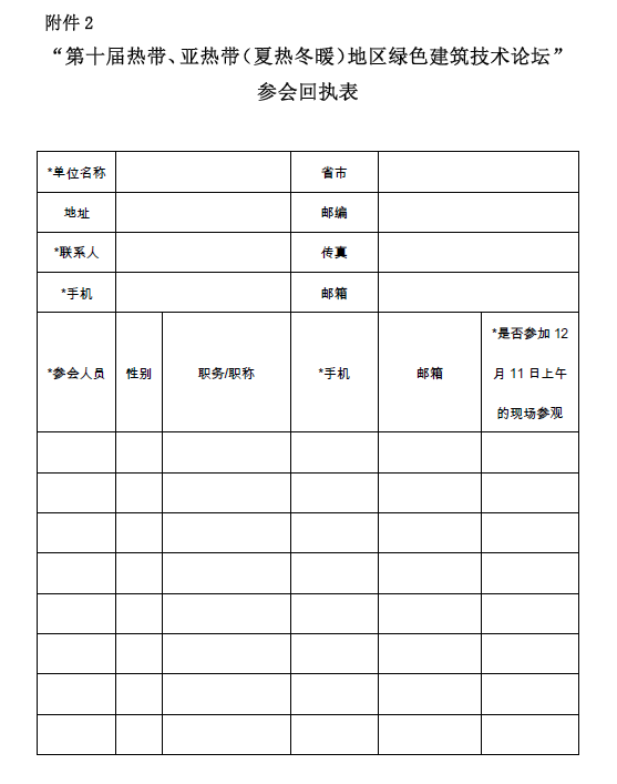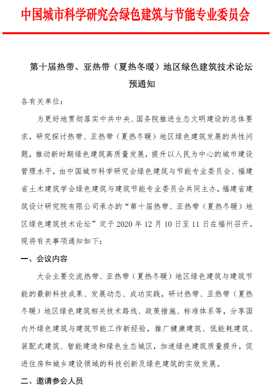第十届热带、亚热带(夏热冬暖)地区绿色建筑技术论坛 预通知