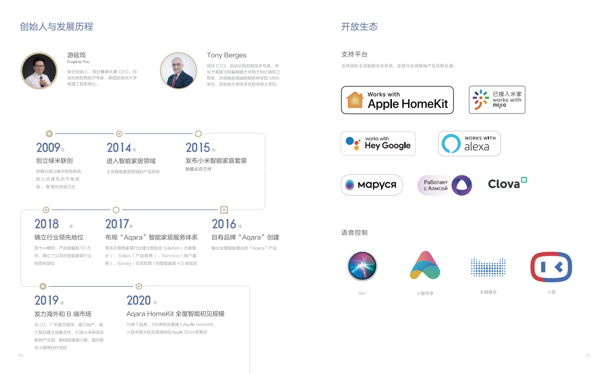 公司从2014年开始进入智能家居领域,主攻小米智能家居的产品研发,专注于低功耗创新型智能家居系统的研究与推广。2015年发布了“小米智能家庭”套装,2017年公司实现了盈利。2018年双十一期间,绿米联创的产品销量就已超越50万余件,2019年40多款产品接入Apple Homekit。凭借创新的技术产品与优异的市场成绩,绿米联创确立了在智能家居领域的领头羊地位。