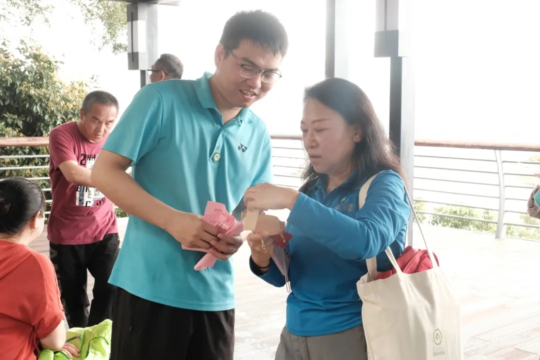 工作人员先后两次踩点,安排合理路线,并在途中精心设置深山寻宝游戏环节。大家人手一份“藏宝图”,寻宝、答题、换奖品……不亦乐乎。