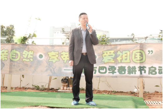 罗湖区教育局副局长郭天明致辞,他表示,在繁华闹市之中,能有此既继承了中国传统文化、又体现了六幼人创新精神的农耕园,我感到既开心又幸福。希望六幼人在张园长的带领下,把六幼办成全国具有示范性的标杆幼儿园。