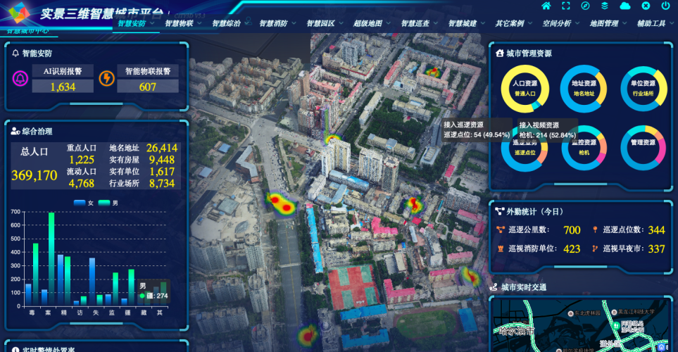 观讯信息研发的GX City 3D三维管理平台,实现实景三维数据快速加载,负责三维场景渲染。三维模型根据倾斜影像匹配确定体块构模而成,地形、建筑物等模型一体化表示,模型的纹理以获取的航空影像表现。建筑物三维体块模型应完整,位置准确、具有现实性,应与获取的航空影像表现一致。智慧城市建设以城市空间可视化为主,以城市级三维建筑物建模为背景,通过多源地理信息数据,如数字高程模型(DEM)、遥感影像数据、矢量数据、三维模型等,构建城市级大尺度信息模型平台,实现多场景、多终端的交互体验。实现基础场景构建、数据加载、自由浏览、图层管理、地图导航等基础功能。