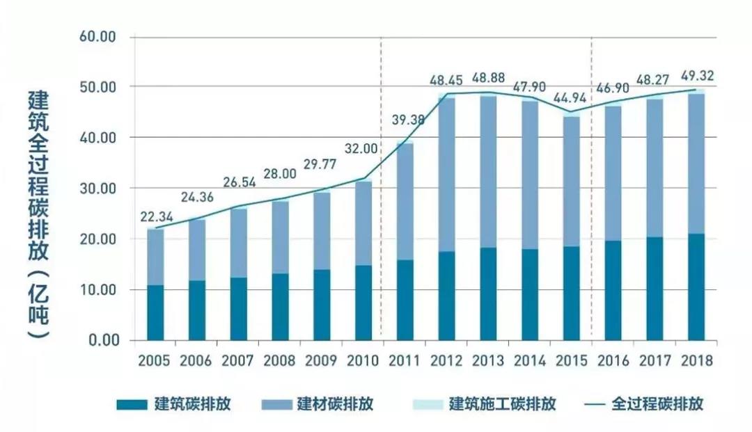 世界上现在有52%的人口居住在城市,而绝大部分的建筑都是新建筑革命时代之后建造的。新建筑革命所带来的这种遗产,使得建筑结构简洁,且更加注重功能,虽满足了人民的基本居住需要,但却丝毫没有怜悯地球会因此受到哪些负面影响。根据国际能源署提供的数据,建筑全生命周期产生的碳排放无论怎么算都占到碳排放总量的40%以上,即人类活动所造成的温室气体排放量中,建筑行业占到其中的40%,而这个比例在我国则达到了50%。