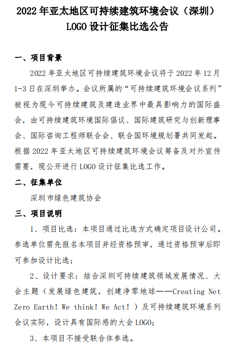 2022年亚太地区可持续建筑环境会议(深圳)LOGO设计征集比选公告