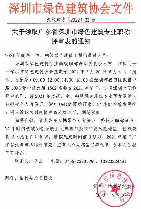 2021年度广东省深圳市绿色建筑专业职称证书打印指南