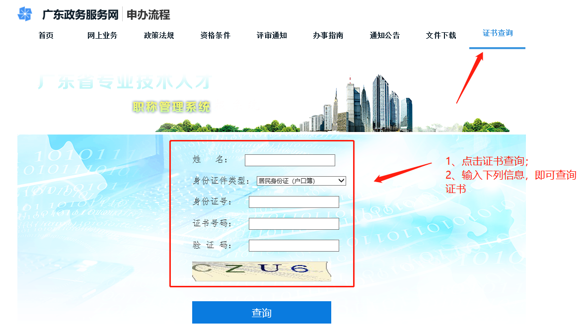 1、请使用IE8及以上浏览器登录“广东省政务服务网” 进入“广东省专业技术人才职称管理系统”,或者通过登录深圳市人才一体化综合服务平台跳转到此网站(https://www.gdhrss.gov.cn/gdweb/ggfw/web/pub/ggfwzyjs.do)