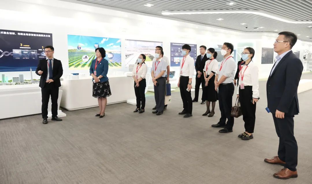 华为数字能源全球营销服副总裁王迪(左八)、总监宋光耀(左六)接待王向昱秘书长(左七)一行
