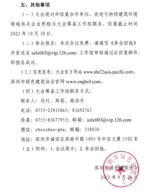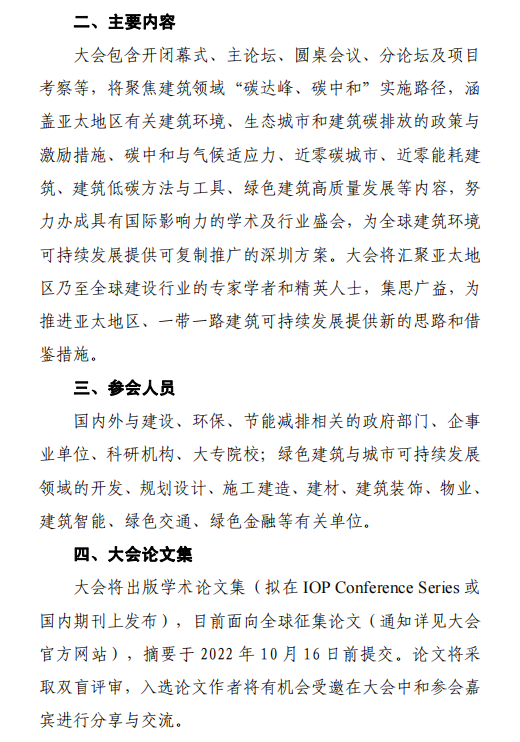 关于召开“2022年可持续建筑环境亚太地区会议”的预通知
