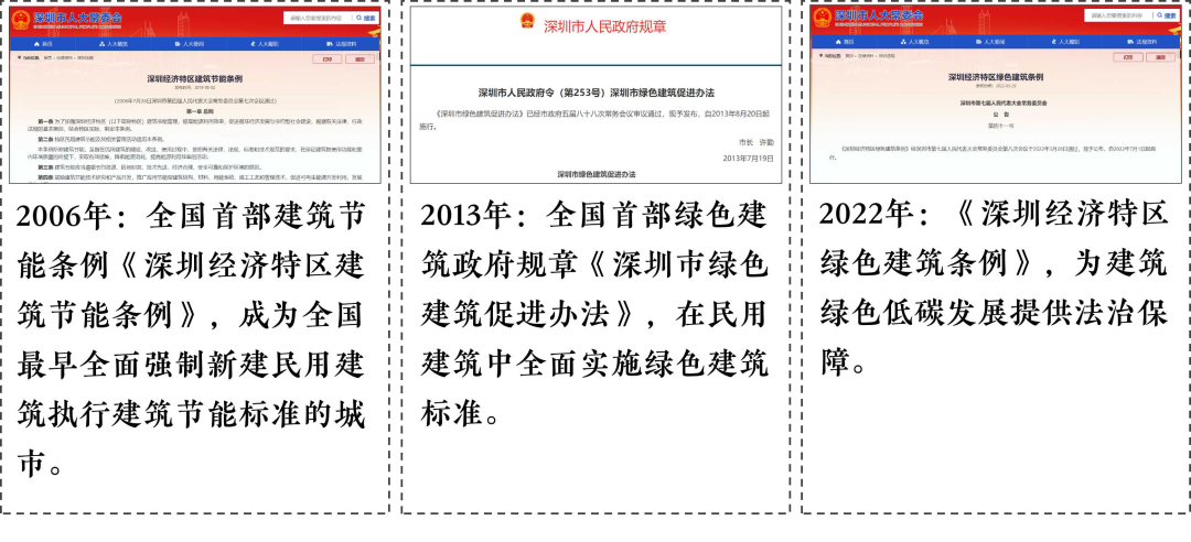 ● 2006年发布实施全国首部建筑节能条例《深圳经济特区建筑节能条例》,成为全国最早全面强制新建民用建筑执行建筑节能标准的城市。