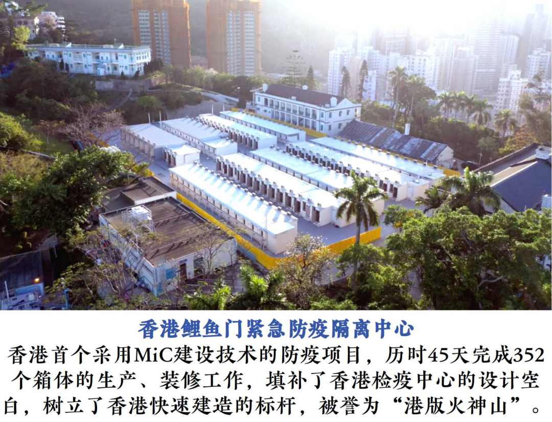 其中,中建海龙科技有限公司运用了MiC(模块化集成建筑)新型建造方式,历时45天建成了鲤鱼门紧急防疫隔离中心;深圳樟坑径保障性住房项目是全国第一个混凝土MiC模块化高层建筑和全国第一个BIM全生命周期数字化交付MiC项目。