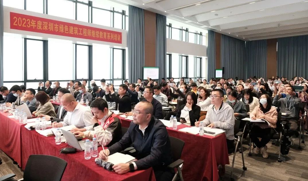 第二场培训邀请中国建筑东北设计研究院有限公司深圳公司副总工程师朱宝峰、中国建筑科学研究院有限公司深圳分公司绿建所所长等行业专家,分别围绕“《绿色建筑评价标准》GB/T50378-2019、SJG47-2018资源节约等章节,以及‘绿色建材、绿色施工、绿色运营要点’”等内容展开培训。