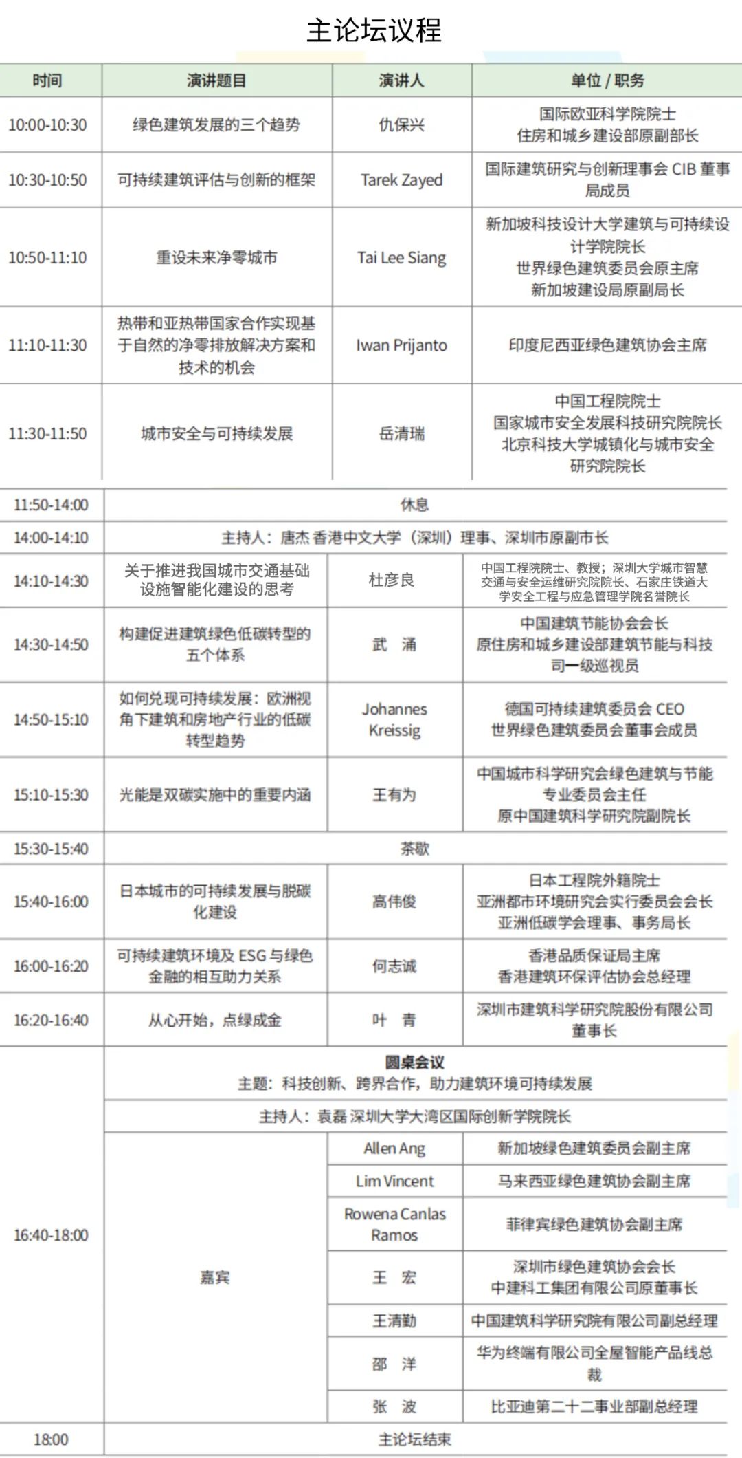 大会除主论坛外,还同期举办“中国-瑞士-德国零碳发展与合作论坛”“中英交流会——建筑业迈向近零”“第三届热带及亚热带地区立体绿化大会”三大平行会议,以及十五场分论坛