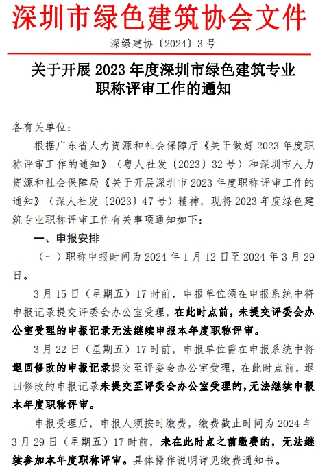关于开展2023年度深圳市绿色建筑专业职称评审工作的通知