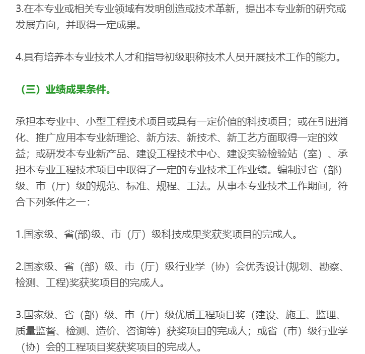 根据《广东省建筑工程技术人才职称评价改革实施方案》(粤人社规【2019】33号)的具体要求,中级工程师申报条件如下:
