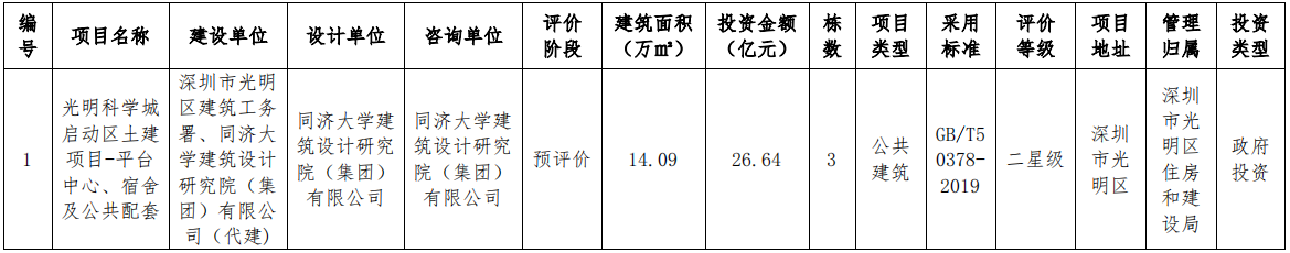 【预评价】光明科学城启动区土建项目-平台中心、宿舍及公共配套项目通过新国标预评价专家评价会