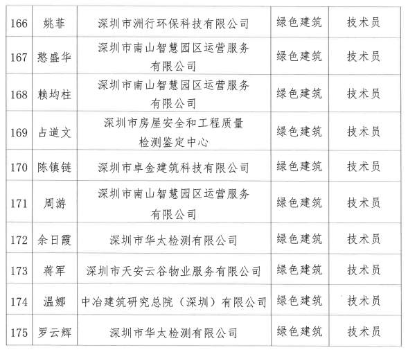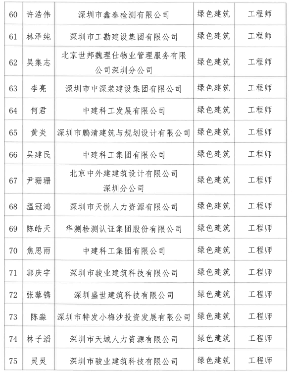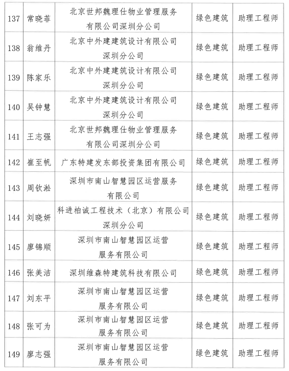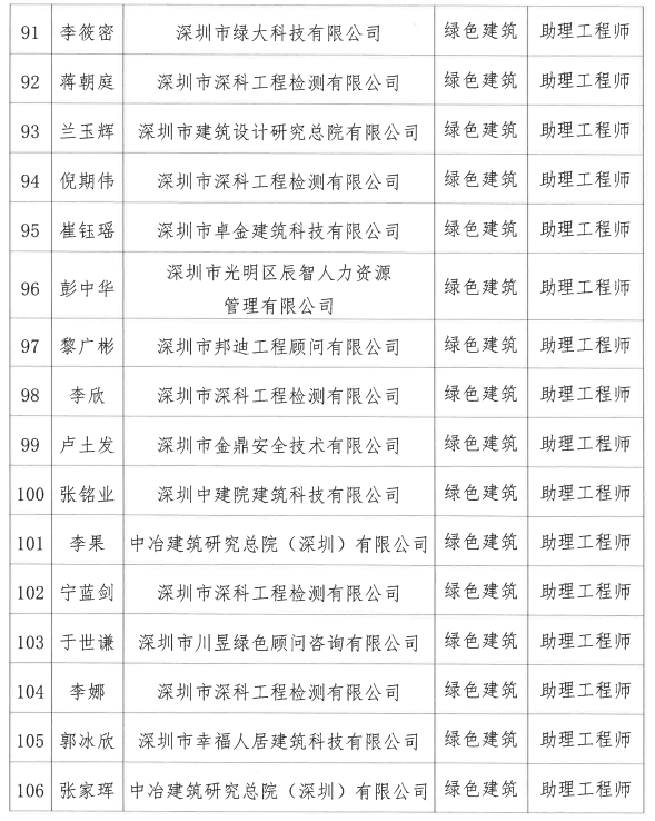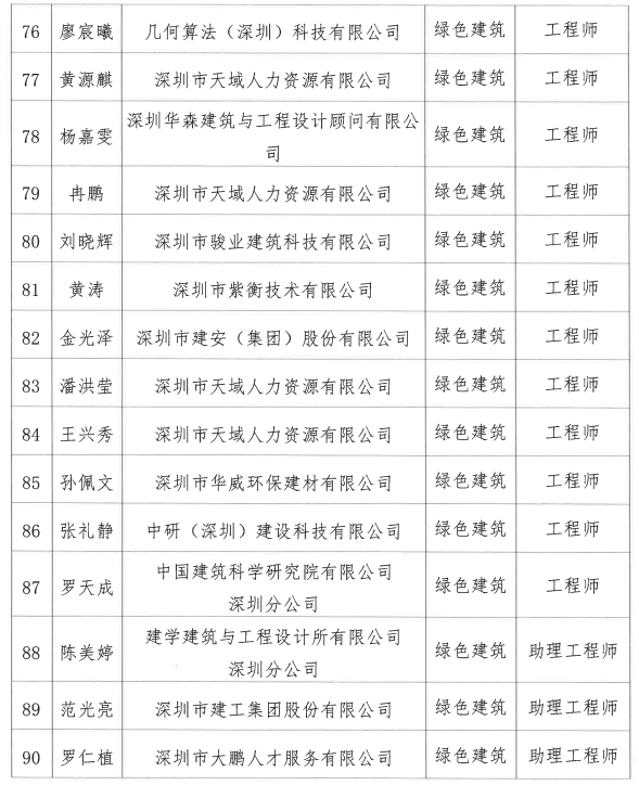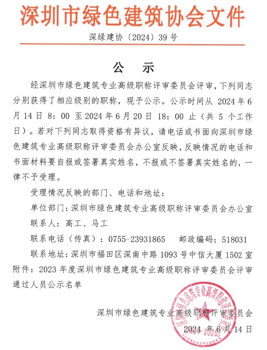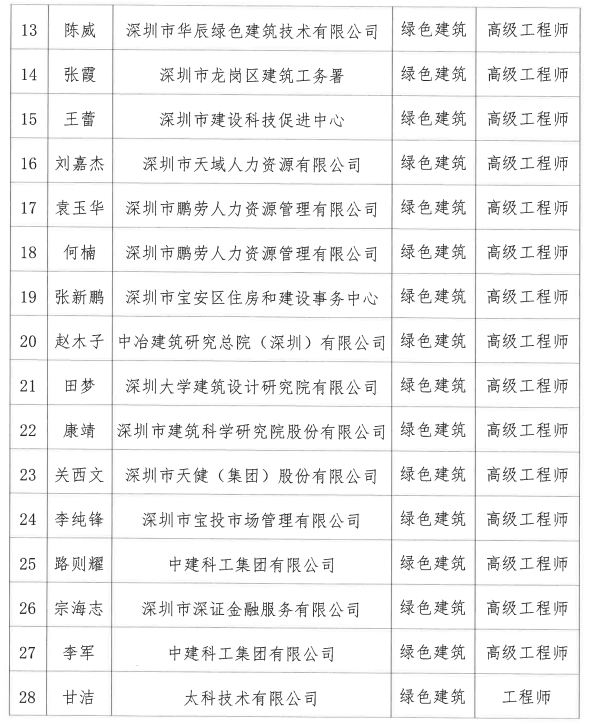 2023年度深圳市绿色建筑专业高级职称评审委员会评审通过人员公示名单