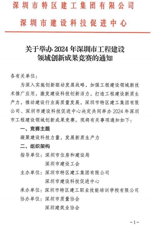 关于举办2024年深圳市工程建设领域创新成果竞赛的通知