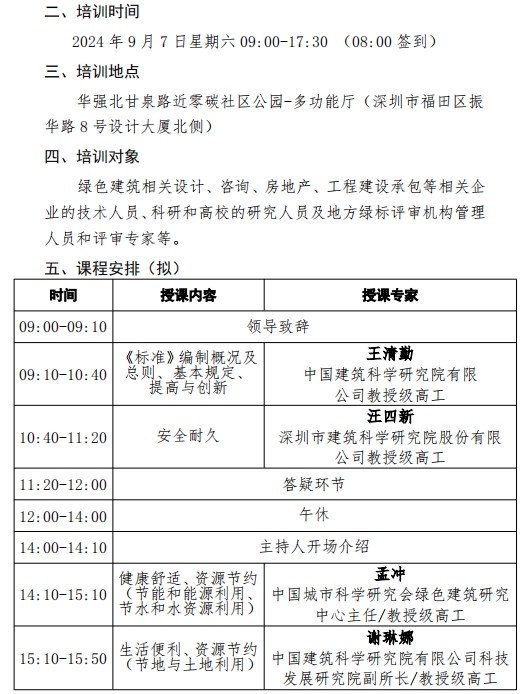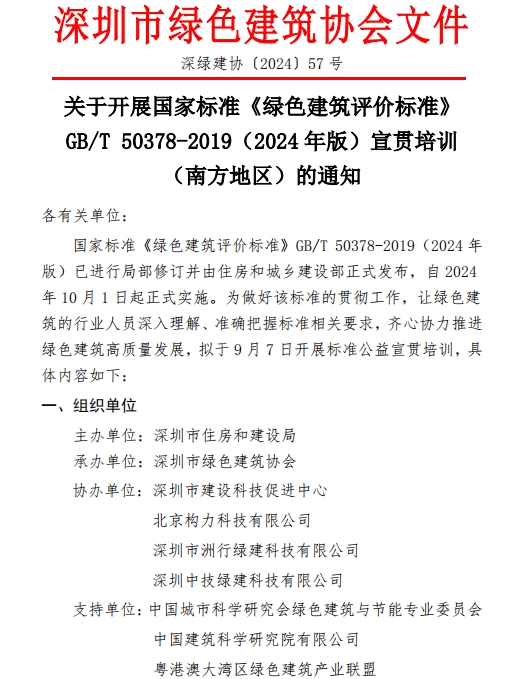 关于开展国家标准《绿色建筑评价标准》GB/T 50378-2019(2024 年版)宣贯培训(南方地区)的通知