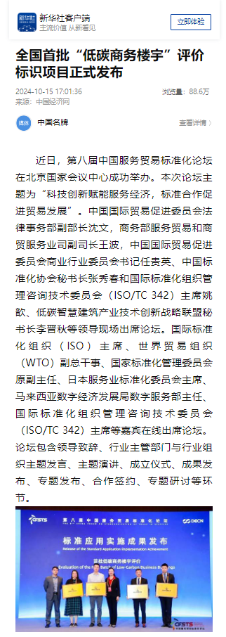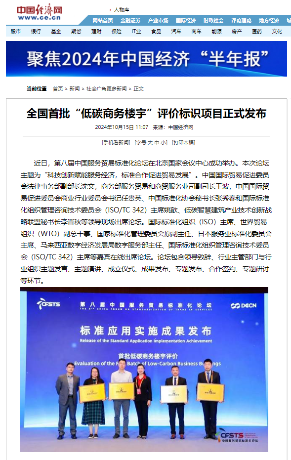 近期,全国首批“低碳商务楼宇”评价标识项目正式发布,获得中国经济网、新华社等两家国家权威媒体的关注和报道。