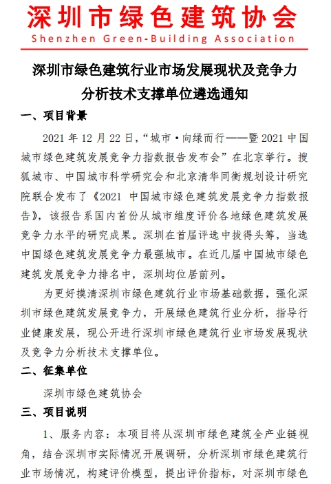 深圳市绿色建筑行业市场发展现状及竞争力分析技术支撑单位遴选通知