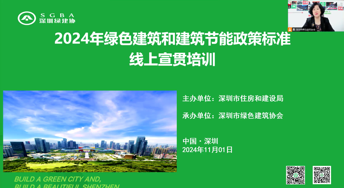 11月1日下午,由深圳市住房和建设局主办、hth网页版怎么进承办的“2024年绿色建筑和建筑节能政策标准宣贯培训”在线上举行,近300人参与此次培训。培训主要围绕“《深圳市建筑节能改造节能量核定导则》编制背景、相关政策及重点章节、条文和创新点解读”,以及“近零能耗和零碳建筑测评申报流程及要点”等内容开展。