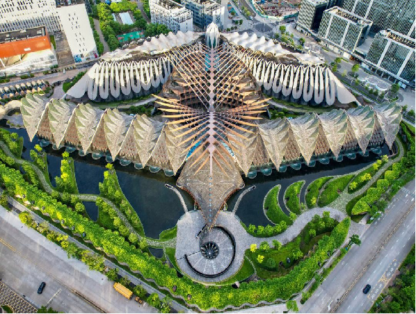 据介绍,项目占地5万平方米,园林景观面积约3万平方米,其中景观水体为0.8万平方米,绿化覆盖率40%,园内绿植通过光合作用减少碳排放约600吨。项目在建筑设计上采用了现代仿生学理念,不仅赋予了建筑以独特的形态美感,更深刻地体现了人类智慧与自然界的和谐共生。项目中广泛应用了多项新技术、新工法以及最新的科研成果展现了企业在技术创新方面的雄厚实力与前瞻视野。
