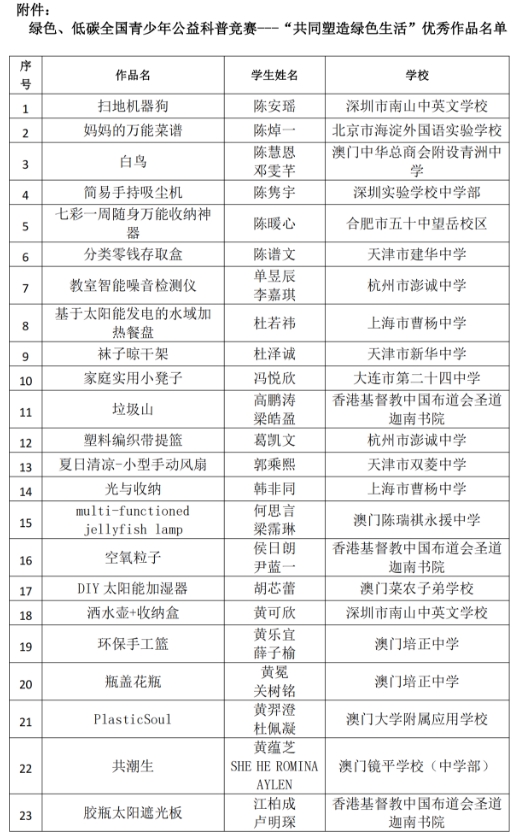 在绿色发展的时代浪潮下,以“共同塑造绿色生活”为主题, 绿色、低碳全国青少年公益科普竞赛成功举办,来自全国各地的初、高中学生们积极响应,用青春的热情和智慧为绿色、低碳事业添砖加瓦。他们不仅身体力行,在公共场所拾起塑料废弃物,还发挥奇思妙想,将家中闲置塑料制品 “变废为宝”。经过筛选和推荐,100件佳作脱颖而出,它们承载着青少年们对绿色生活的美好憧憬。