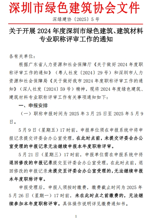 关于开展2024年度深圳市绿色建筑、建筑材料专业职称评审工作的通知