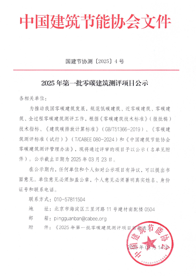 2025年3月14日,中国建筑节能协会印发《2025年第一批零碳建筑测评项目公示》,公示截止日期为2025年3月23日。由hth网页版怎么进开展测评工作的7个广东省零碳建筑测评项目通过公示,顺利取得标识证书。