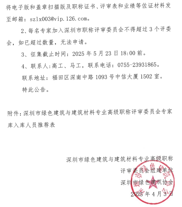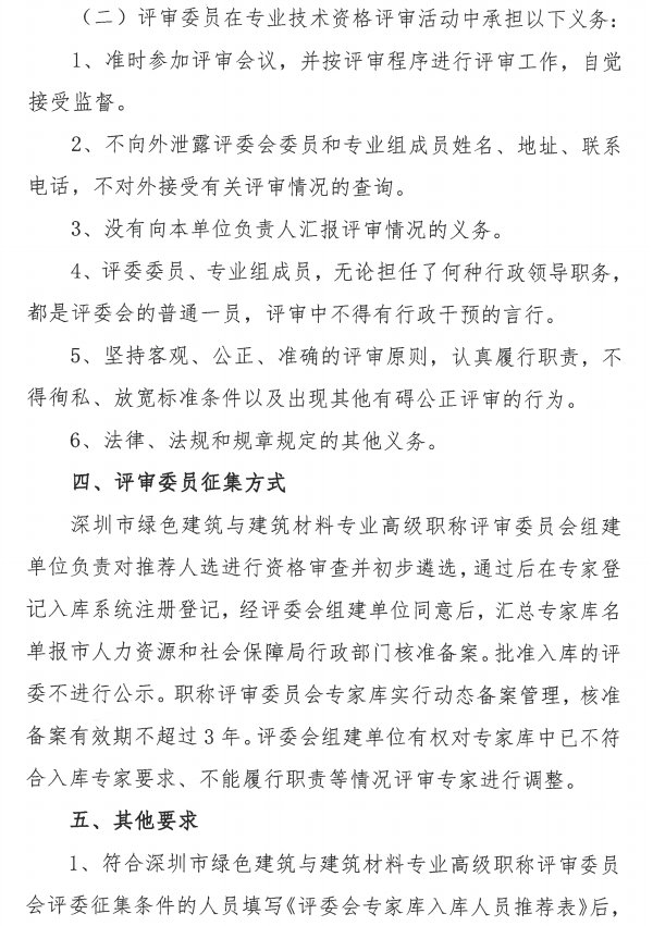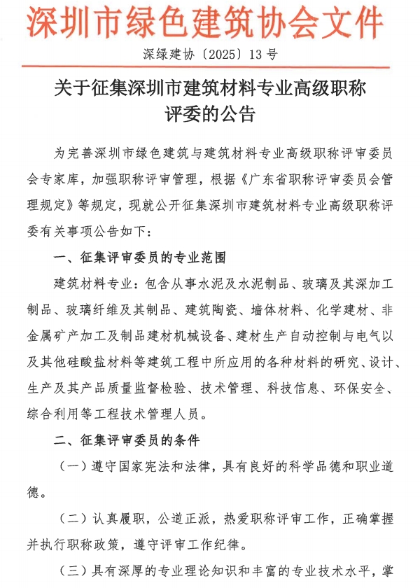 关于征集深圳市建筑材料专业高级职称评委的公告