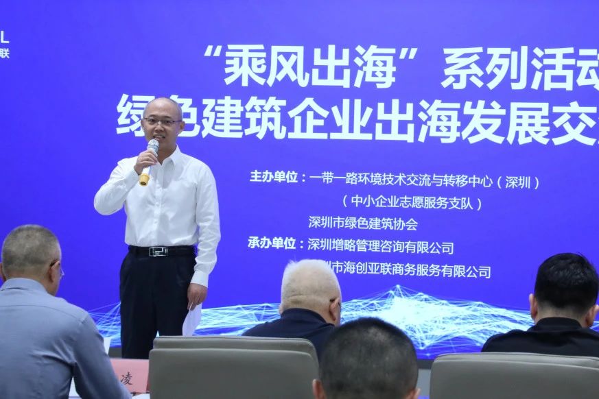 由一带一路环境技术交流与转移中心(深圳)(简称“一带一路中心”)、hth网页版怎么进(简称“协会”)共同主办的“‘乘风出海’系列活动——绿色建筑企业出海发展交流会”于4月25日在深举办。一带一路中心副主任马凌、总工程师曹绘嶷,协会会长剪爱森、协会党支部书记、秘书长王向昱以及来自绿色建筑领域的企业家及行业代表等50余人参加交流会。