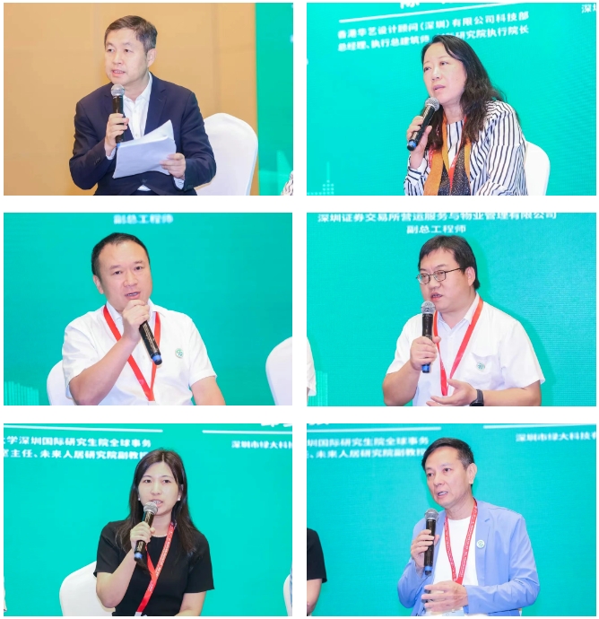 圆桌会议环节同样精彩不断,香港华艺设计顾问(深圳)有限公司科技部总经理、执行总建筑师、创新研究院执行院长陈竹,深圳市特区建工能源建设集团有限公司总工程师张平,深圳证券交易所营运服务与物业管理有限公司副总工程师圣超,清华大学深圳国际研究生院全球事务办公室主任、未来人居研究院副教授张一,深圳市绿大科技有限公司总裁邱少腾等来自设计、施工、运营、研究、咨询等建筑全生命周期的专家齐聚一堂,围绕建筑光伏的实践应用、发展前景等热点话题展开了深入而热烈的探讨,碰撞出了智慧的火花。