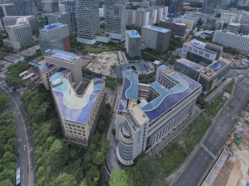 讲座后,参会人员现场观摩了“虚拟大学园区第六立面改造与能源提升项目”。项目由深圳市深汇通能源科技发展有限公司投资建设,旨在通过创新技术与设计,对城市建筑屋顶等未被充分利用的空间进行改造与提升,打造集绿色生态、休闲娱乐、能源利用于一体的多功能复合空间,实施范围共包含深圳清华大学研究院、中国地质大学产学研基地等18栋建筑。项目按照投资+设计+施工+运营管理的实施模式推动开展,统筹考虑功能性、美观性和经济性,在提升建筑第六立面的同时,同步考虑光伏设施的发电功能、楼宇能源管理和项目整体投资的经济可持续性。