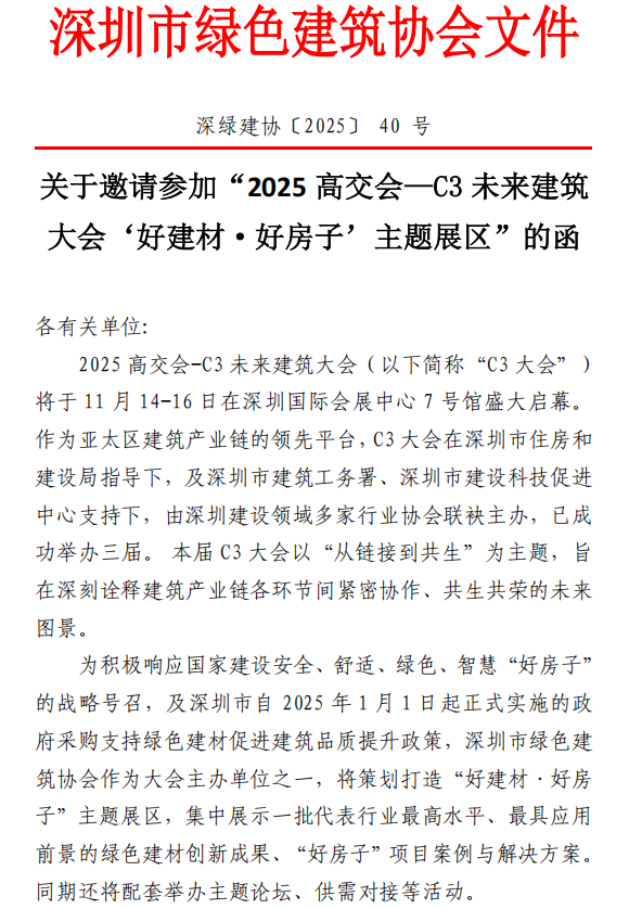 2025年政府工作报告首次将“适应人民群众高品质居住需要,完善标准规范,推动建设安全、舒适、绿色、智慧的‘好房子’”写入其中,标志着“好房子”建设已上升为国家战略。随之各地政府密集出台绿色建材推广应用政策,深圳亦从2025年1月1日起实施政府采购支持绿色建材促进建筑品质提升政策。这无疑对建筑材料的性能、品质和创新提出了更高、更迫切的要求。